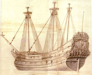Kuģa zīmējums no Kurzemes hercogu arhīva.