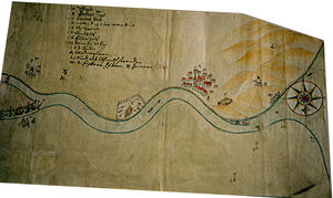 1. Ventspils un apkārtnes topogrāfiskais plāns. 17. gs. 50. gadu beigas. Kara arhīvs, Stokholma