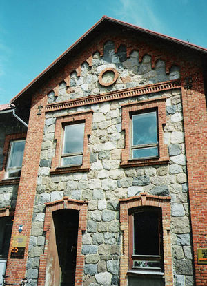 - Plēsto laukakmeņu un sarkanā ķieģeļa ēka Madonā. Fasādes fragments. 19. gs. b.– 20. gs. s.]]