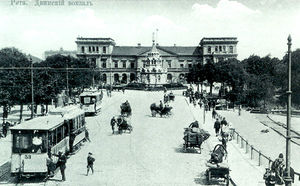 - Rīgas I dzelzceļa stacijas galvenā ēka. 1884–1885, kapela –1889.gads. Attēls no: Lejnieks J. Rīgas arhitektūra. Fotoalbums.–1989.