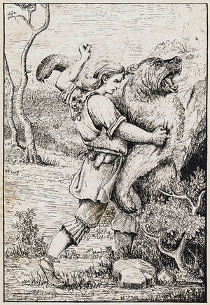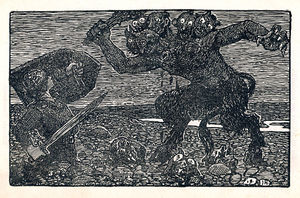 18. „Misiņbārdis un stiprais kalps”, 1913. Ilustrācija, mākslinieks J. R. Tillbergs