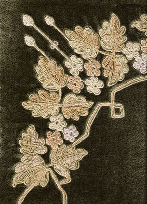 Galdauta fragments. Kokvilnas samts, mašīnizšuvums. 20.gs. sākums