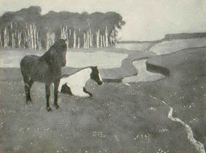 5. Zirgi mēnesnīcā. Pieguļā. Ap 1910. Atrašanās vieta nezināma. Reprod.: Ilustrēts Žurnāls. 1925. Nr. 10. 281. lpp.