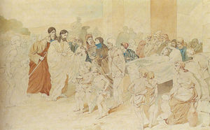 1. Kristus un Jaira meita. 1885. Papīrs, grafīts, akvarelis, sēpija, 52 x 69,5 cm. LNMM