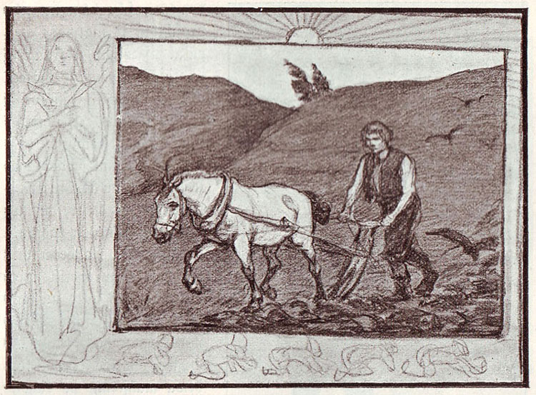 Ādams Alksnis. Arājs ar baltu zirgu. 1890. gadu vidus. Papīrs, zīmulis, 7,5 x 9,5 cm. LNMM