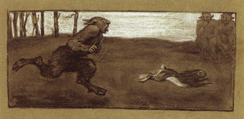 Ādams Alksnis. Skriešanās. 1890. gadu vidus. Papīrs, ogle, pastelis, 11 x 25,3 cm. LNMM