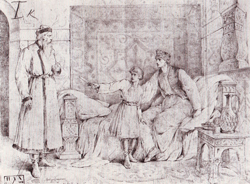 Vladimirs un Ragneda. 1886. Papīrs, grafīts, 54,2 x 73 cm. LNMM