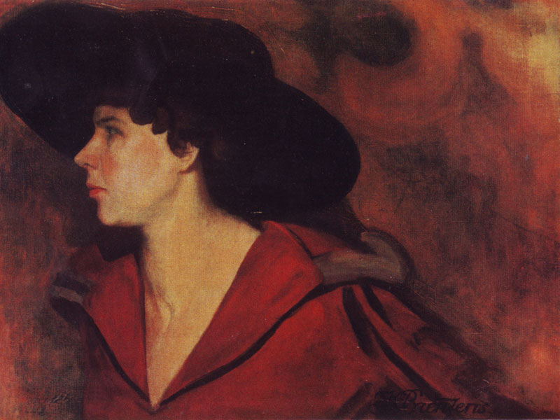 Kārlis Brencēns. Nezināmās portrets (ar melno cepuri). 1918. Audekls, eļļa, 53 x 71.LNMM
