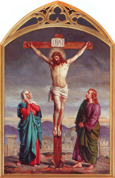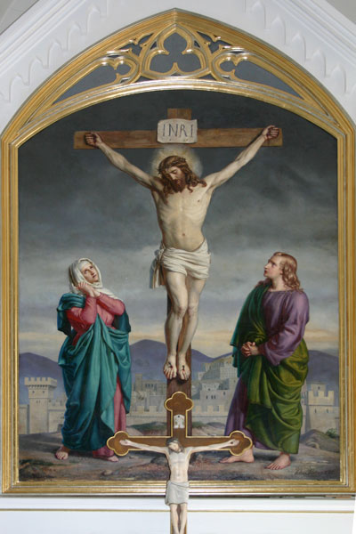Jūliuss Dērings. Kristus pie krusta. 1865. Audekls, eļļa. Altāglezna Jelgavas Sv. Jāņa baznīcā.