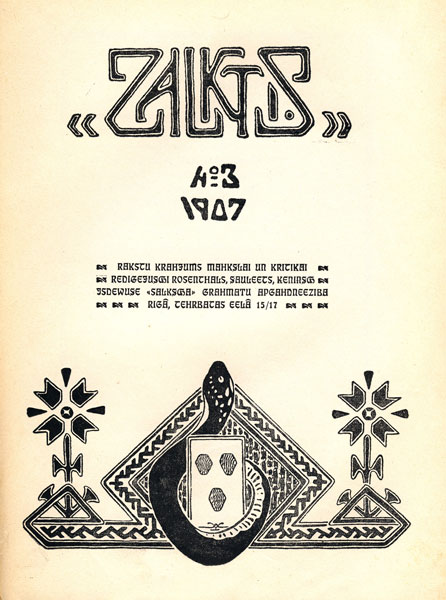 „Zalktis” Nr. 3, 1907. Titullapa, mākslinieks B. Dzenis.
