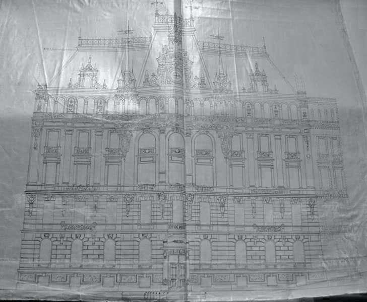 Eizenšteins, Ļebedinska nams Alberta ielā 13. 1905. Fasādes zīmējums. VVA