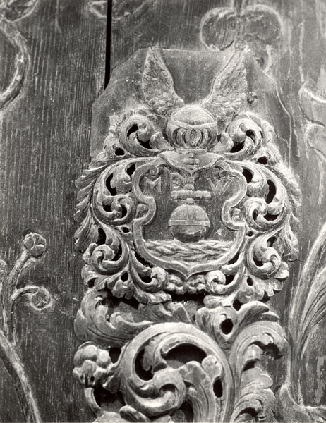 Ģerbonis no Mihaela Henkes ģimenes epitāfijas Landzes baznīcā. Foto: VKPAI PDC
