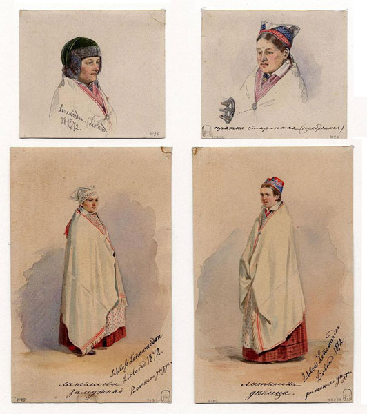 Etnogrāfiskās studijas. Latvietes. 1872. Papīrs, zīmulis, akvarelis. LNMM