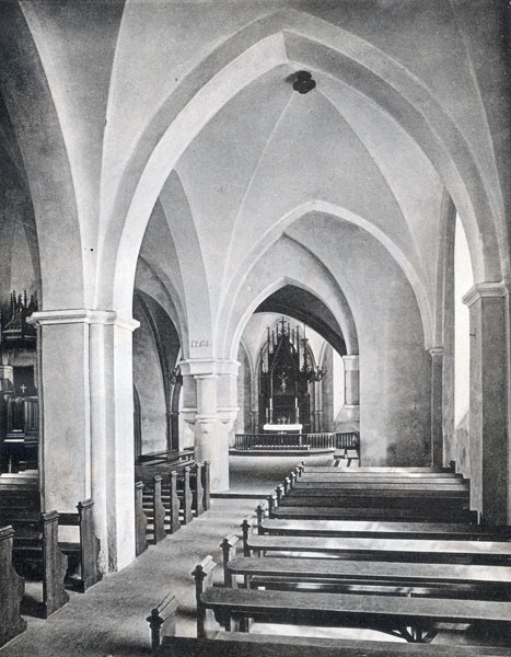 Ikšķiles baznīcas interjers pēc J. D. Felsko pārbūves. Dienvidjoms un altāra koris. No: Alt-Livland. Gesammelt u. hg. R. Guleke. 5. Lieferung. Leipzig : Kommissionsverlag K. F. Koehler, 1896. T. LIII.