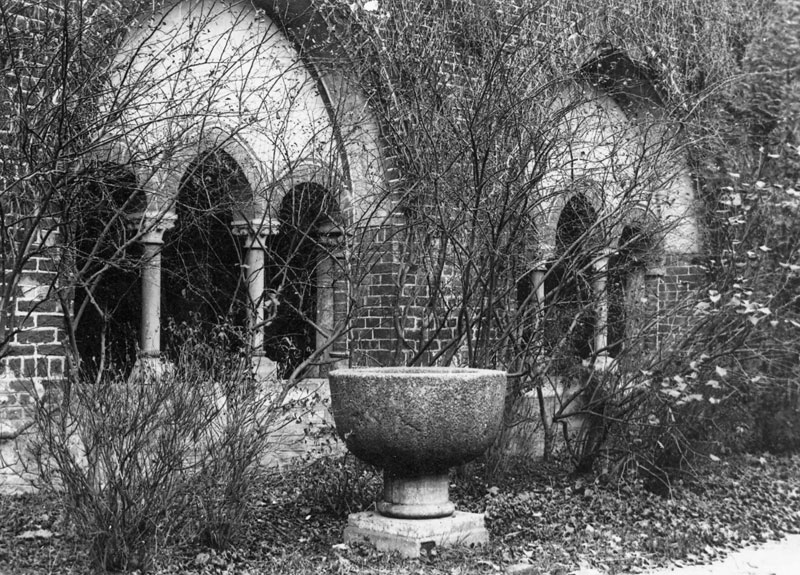 Rekonstruētais Ikšķiles baznīcas kristāmtrauks Rīgas Doma pagalmā. Foto: Baltijas Centrālā bibliotēka
