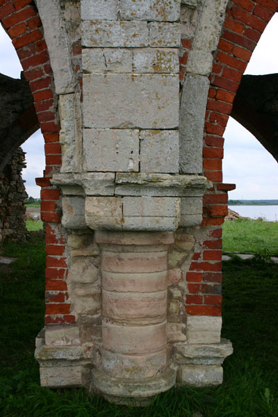 Romāniskā kolonna Ikšķiles baznīcā 2005. gadā. Foto: Elita Grosmane