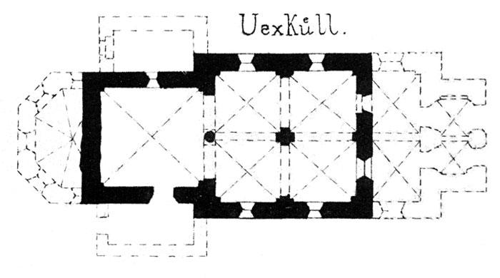 Ikšķiles baznīcas plāns 13. gs. No: Alt-Livland. Gesammelt u. hg. R. Guleke. 5. Lieferung. Leipzig : Kommissionsverlag K. F. Koehler, 1896. T. LII