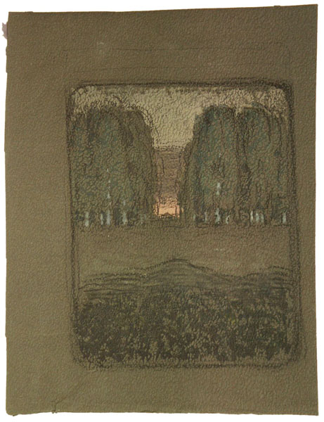 Pēteris Krastiņš. Mežiņš. Ap 1905–1907. Tonēts papīrs, tempera, ogle. 20,1 x 15,5 cm (iekšējais laukums: 14,3 x 11,5 cm). LNMM, inv. Nr. Z–682.