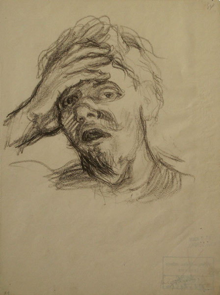 Pēteris Krastiņš. Pašportrets. 1909. Papīrs, brūns zīmulis. 27,2 x 20,4 cm.