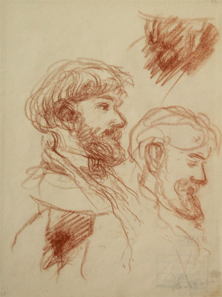 Pēteris Krastiņš. Teodora Zaļkalna galvas studijas. 1909. Papīrs, sangīna. 27,2 x 20,4 cm. LNMM, inv. Nr. Z–552.
