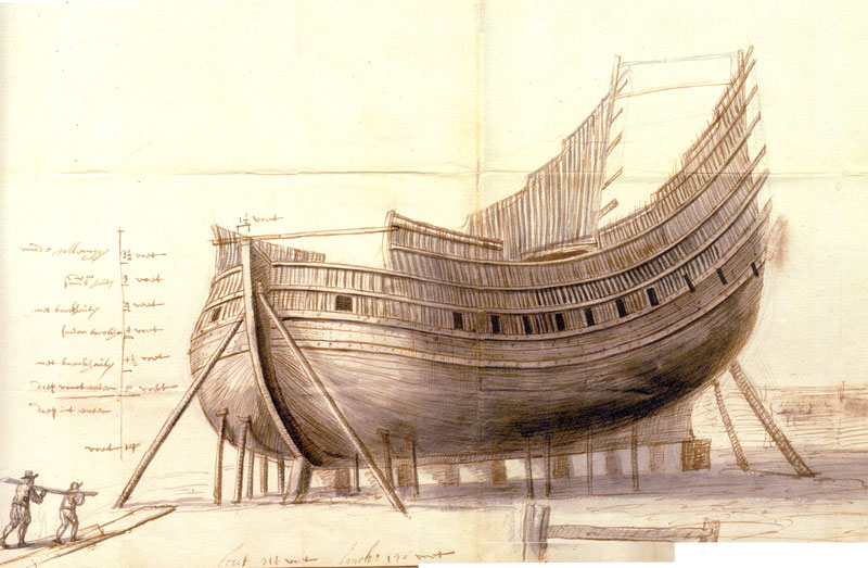 Kuģa sagataves zīmējums no Kurzemes hercogu arhīva. LVVA, 554. f., 1. apr., 850d. l.