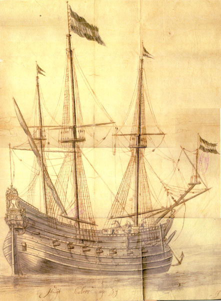 Kuģa zīmējums no Kurzemes hercogu arhīva. LVVA, 554. f., 1. apr., 850d. l.