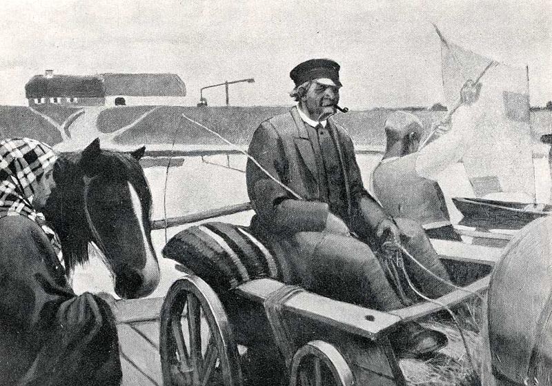 Konstantīns Lielausis. Uz prāmja. 1912 – 1914. Atrašanās vieta nav zināma. Reprod.: Ilustrēts Žurnāls, 1926, Nr. 5, 133. lpp.