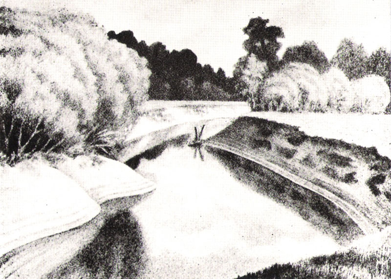 Jūlijs Madernieks. Pededzes upe. 1933. Ogles zīmējums. Reproducēts no Novadniece I. Jūlijs Madernieks. 89. lpp.