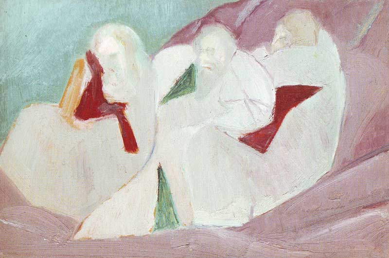 Studija. Trīs sēdoši vīri. 1910. Audekls, eļļs, 13,5 x 20 cm. LNMM