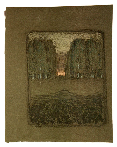 Pēteris Krastiņš. Mežiņš. Ap 1905–1907. Krāsains papīrs, pastelis. 20,1 x 15,5 cm (iekšējais laukums: 14,3 x 11,5 cm). LMNM, inv. Nr. Z–682