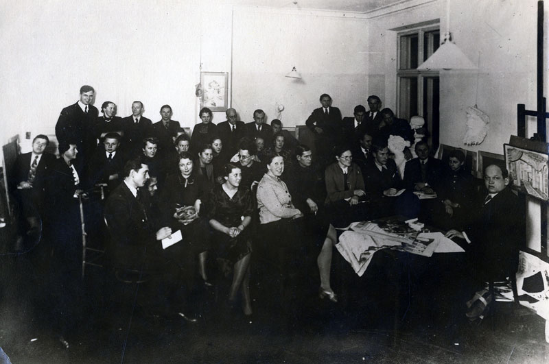 Rīgas Tautas augstskolas zīmēšanas un gleznošanas studija. Pirmais no labās – Romans Suta. 20. gs. 30. gadu sākums. Foto: R. Sutas un A. Beļcovas muzejs