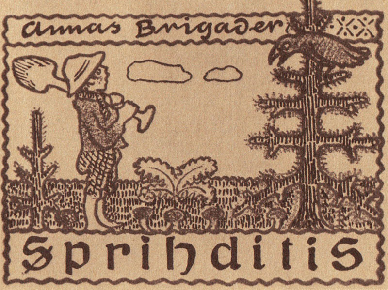 Vāka zīmējums A.Brigaders pasakai “Sprīdītis”. Krāsu litogrāfija. 1904.
