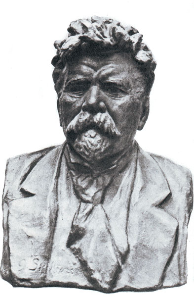Rūpnieks Augusts Dombrovskis. 1916. g. G. Šķiltera veidotā biste. Patinēts ģipsis, 50 x 31 x 39. LNMM. Foto: N. Brasliņš