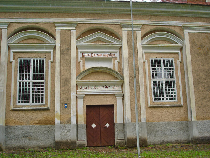 Subates lut. baznīcas galvenā fasāde ar ieejas portālu. Foto: Anna Ancāne, 2005