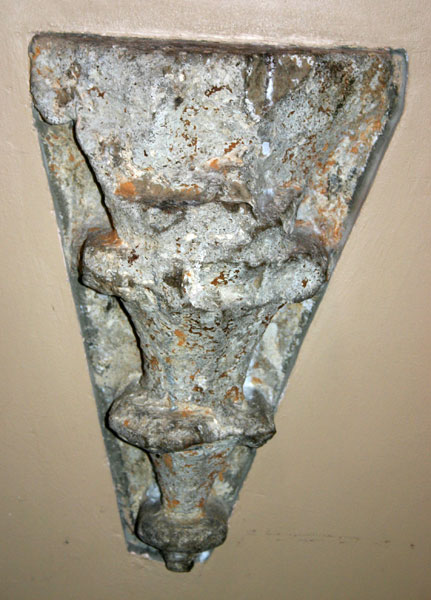 Sv. Jēkaba baznīcas zemtorņa telpā iemūrēta konsole. 15. gs. Foto: Elita Grosmane