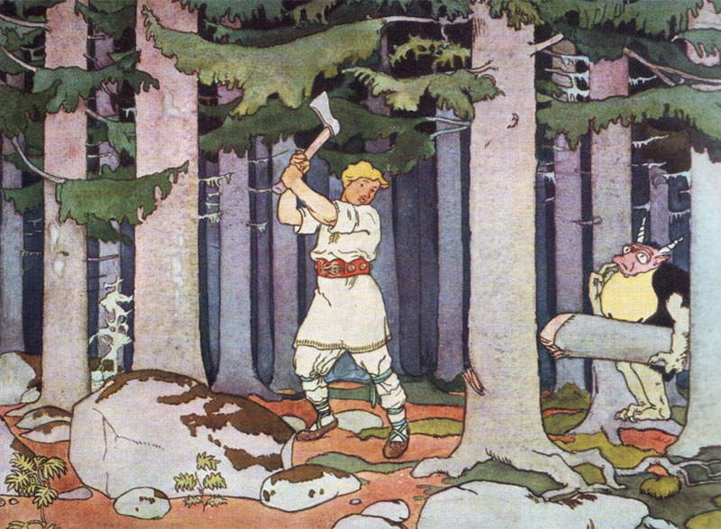 Ilustrācija A. Brigaderes pasakai „Misiņbārdis un stiprais kalps”. 1913.