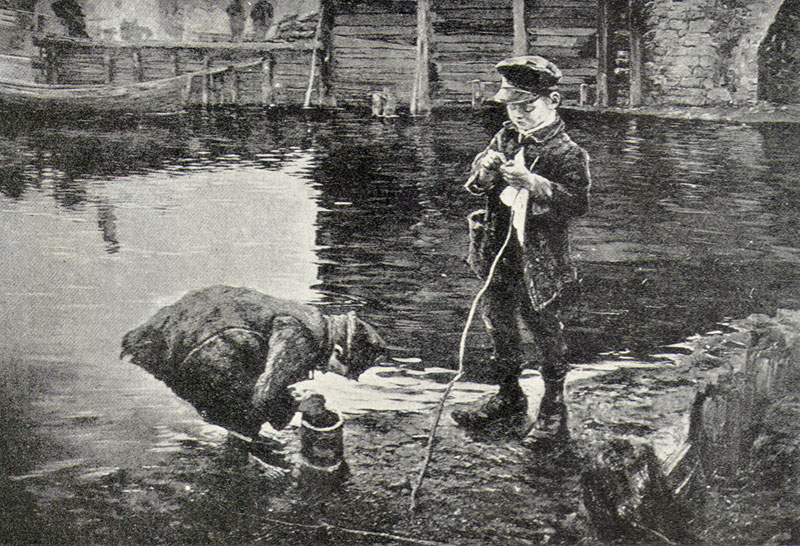 Johans Valters. Pie ostas (Zēni makšķernieki). 1894. Atrašanās vieta nezināma. No: Ilustrēts Žurnāls, Nr. 11, 1925, 314. lpp.