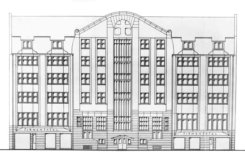 van Velde A. Sv.Pētera baznīcas pastorāta un skolas ēka Rīgā, Vaļņu ielā. 1910―1912. Fasādes zīmējums.