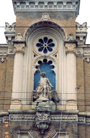 - H. Šēls un F. Šefels. K. Zihmana nams Teātra ielā 9. 1903. A. Folca veidotā akrotēriju grupa