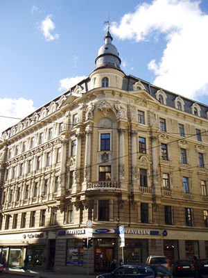 - Ņesterovu nams Rīgā. 1899. Atēls no Riga und Seine Bauten. Riga, 1903. 5a. Fasādes fragments