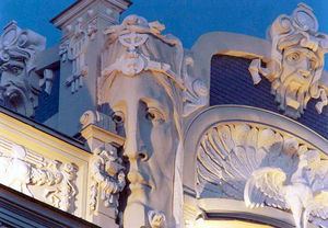 - Ļebedinska nams Alberta ielā 13. 1905. Fasādes fragments. I.Prēdeļa foto.
