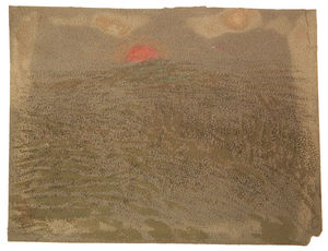 18. Fantastisks uzmetums. Ap 1911. Tonēts papīrs, pastelis, ogle. 18,2 x 16,2 cm (iekšējais laukums: 12,5 x 14 cm). LNMM, inv. Nr. Z–593.