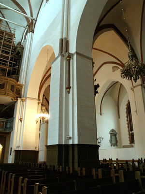 15. un 16. gs. mijā arhibīskapu Mihaela Hildebranda (1433-1509) un viņa sekotāja Jaspera Lindes ([?]-1524) laikā katedrāles interjers sasniedza augstāko greznības pakāpi, baznīcas sienas klāja gleznojumi, altāru skaits svārstījās ap 30. Centrālais bija Jaunavas Marijas virgo gloriosa altāris ar tronī sēdošu dievmāti baznīcas korī pie austrumu sienas, tam līdzās atradās īpaši godātā Svēto asiņu pielūgšanas vieta, bet altāra kora priekšā vidusjoma un šķērsjoma krustojumā stāvēja lajiem pieejamais Svētā krusta altāris. Kulmināciju bija sasniegusi relikviju kulta pielūgšana un ar tām saistītie svētceļojumi. No aptuveni apjaušamās bagātības līdz mūsdienām nonākuši tikai divi garīdznieku soli, kas novietoti baznīcas altāra korī un pirmā bīskapa Meinarda no Zēgebergas (ap 1130/1140-1196) kapene.