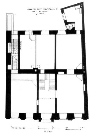 2. Reiterna nama 1. stāva plāns pirms pārbūves. Valsts Kultūras pieminekļu aizsardzības inspekcijas dokumentācijas centra arhīvs: No: Jansons, G. Pētījumu materiāli par arhitektūras pieminekli - bij. Dzīvojamo namu Rīgā, Mārstaļu ielā 2/4. Rīga, 1971, 19. lpp.