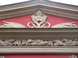 20. gs. 80. gadu restaurācijā veikto zondāžu laikā izpētes grupa arhitektes Liesmas Markovas vadībā uz fasādes tēlnieciskā dekora fragmentiem atklāja polihromijas un zeltījuma paliekas, savukārt visus reljefos dekoratīvos elementus ietvēra ierāmējums par fasādi tumšākā, sarkanā tonī.