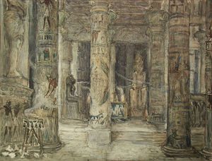 - Ēģiptiešu tempļa skats. Dekorāciju mets Džuzepes Verdi operai “Aīda”. N. v. 1911. Papīrs, akvarelis. 46,3 x 61,1 cm. LNMM, inv. Nr. Z–4400.